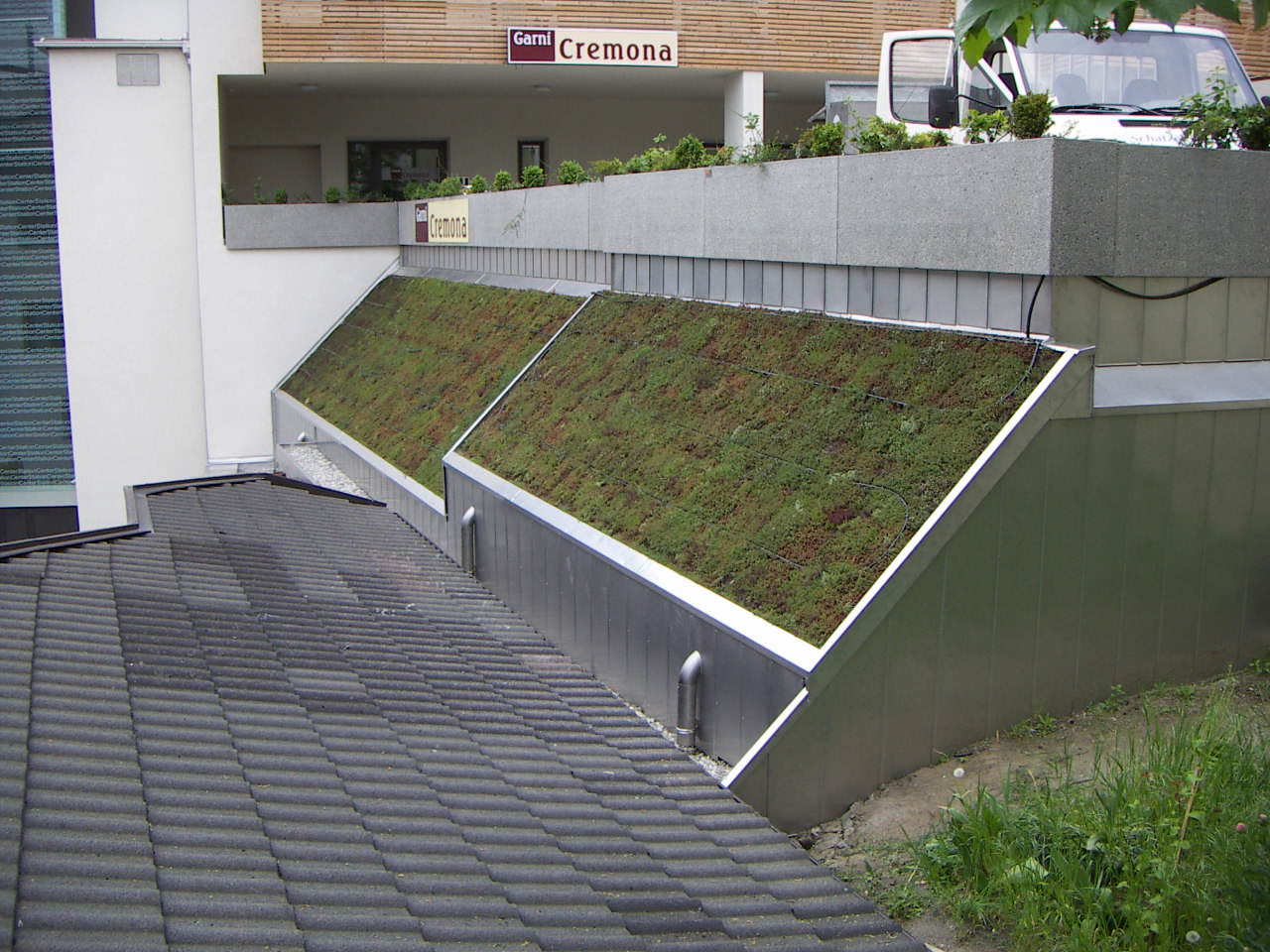 Befestigungssystem für Dachbegrünung für geneigte Flächen von 16 bis 30°